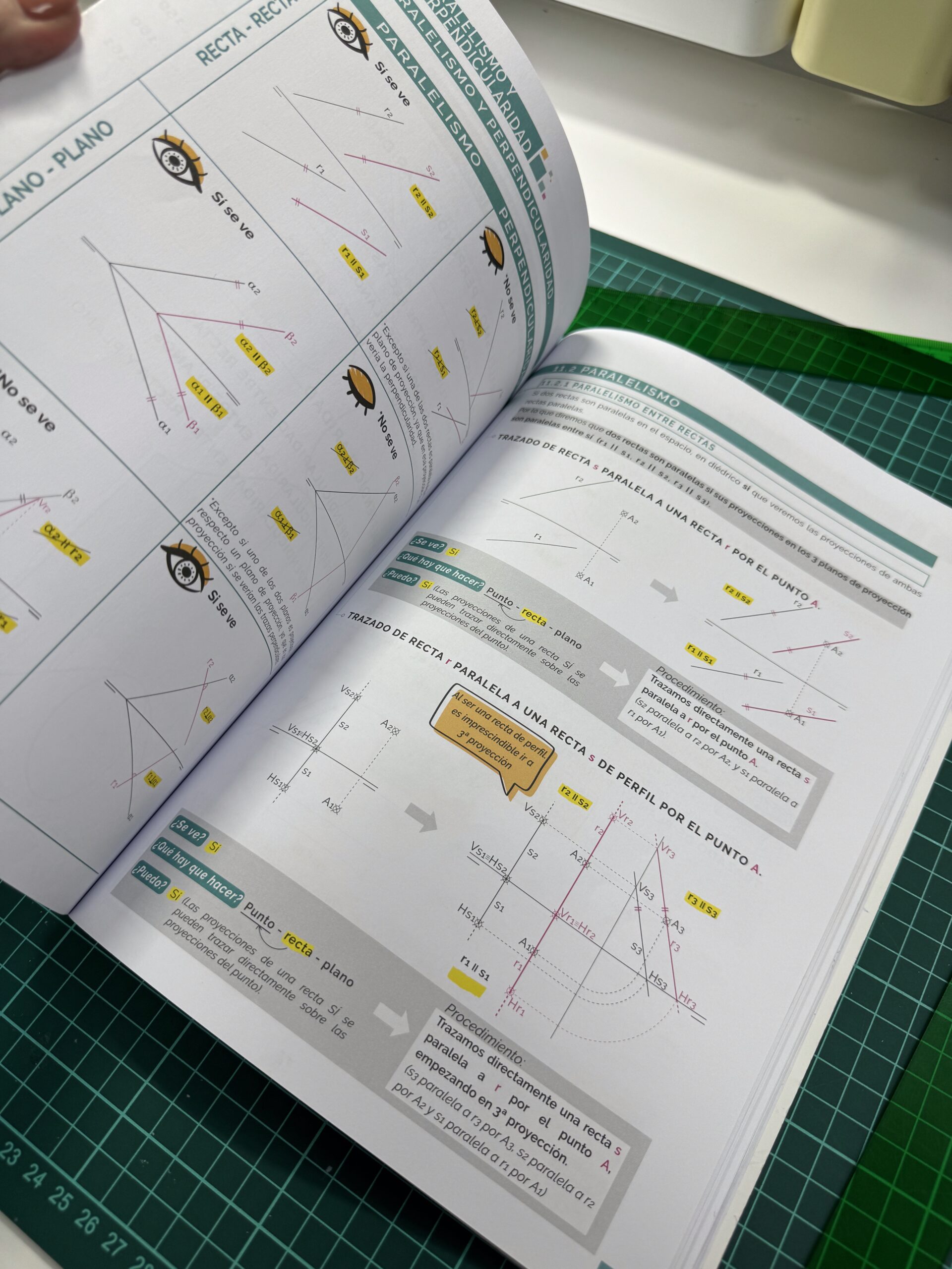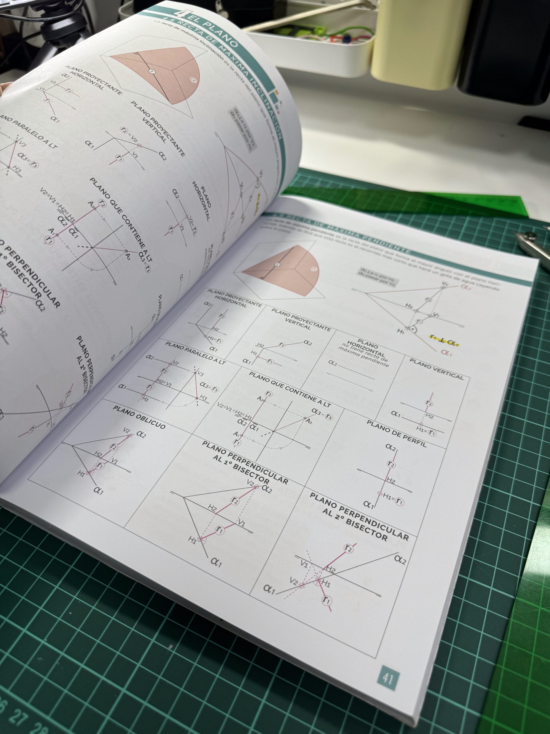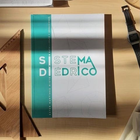 Es un libro de sistema diédrico convencional (con línea de tierra) escrito, editado, y autopublicado por Ester Martínez Nieto.